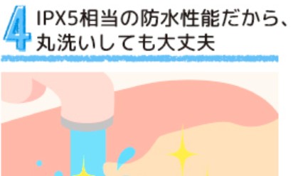 バッハスマートの防水機能はIPX5相当ということになっています。